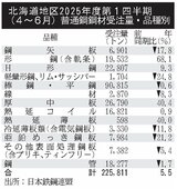 北海道の普通鋼鋼材受注/4~6月、5.5%増加/増加はH形鋼、厚中板など5品種