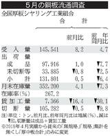 厚板シヤ工組の5月鋼板流通調査/在庫量、2カ月連続増/受入量漸増、出荷量上回る