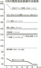 鉄鋼月間市況/関西地区/6月/冷延ステンレス鋼板、初旬に1万円安/鉄スクラップも1000円下落