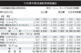大阪鉄流協厚板部会/11月厚中板流通動態/月末在庫減少