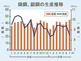 7月鋳鍛鋼生産/鍛鋼回復傾向、3%増の4.5万トン/鋳鋼は15%減