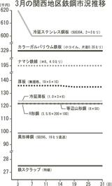 鉄鋼月間市況/関西地区/3月/Ni系ステンレス薄板、2万円安/厚板は中旬に1000円値下がり