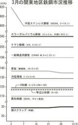 鉄鋼月間市況/関東地区/3月/鉄スクラップ、下旬に1000円反発/冷延ステンレス鋼板は上旬に下落