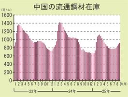 9月上旬の中国流通在庫/5カ月ぶり900万トン台へ増加/メーカー在庫も増加傾向