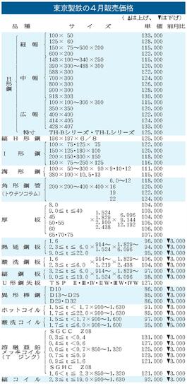 東京製鉄の4月鋼材販価/薄板類・異形棒、6カ月ぶり値下げ/下げ幅3000円、酸洗コイルのみ5000円/薄板=輸入材対抗、異形棒=関西以西の市況反映
