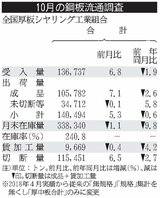 厚板シヤ工組の10月流通調査/出荷量2カ月連続前月比増/在庫調整進み需給も改善