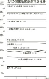 鉄鋼月間市況/2月/関東地区/H形・一般形鋼、下旬に2000円安/冷延鋼板も月末に小幅安