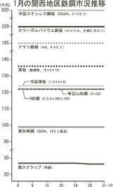 鉄鋼月間市況/関西地区/1月/鉄スクラップ、500円下落/H形鋼は弱含み横ばい