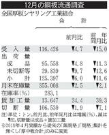厚板シヤ工組の12月流通調査/出荷量、2カ月連続前月比減/需要の厳しさ鮮明