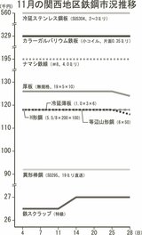 鉄鋼月間市況/関西地区/11月/冷延薄板・厚板、2000円安/鉄スクラップは中旬に上伸