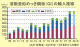 溶融亜鉛めっき鋼板輸入/24年も過去最高レベルへ/前年並み71万トン前後の見込み/中国、韓国からの増加目立つ/15年間で4.5倍、通商措置求める声も