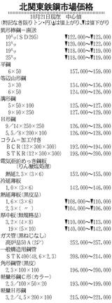 北関東市況/異形棒鋼が3千円安/熱延薄板と中板は安値2千円下落