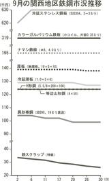 鉄鋼月間市況/関西地区/9月/鉄スクラップ、7000円下落/異形棒鋼は中旬から値下がり