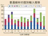 8月の普通線材輸入/28%増の1.7万トン/3カ月ぶり増