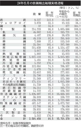 6月の品種別鉄鋼輸出/ホット、印向け14万トン/棒鋼は10年ぶり1万トン割れ