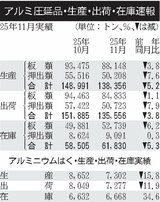 11月のアルミ圧延品出荷/3.8%減、13万5556トン/缶材・建材など全般に低調