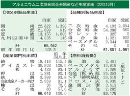 10月のアルミ二次合金生産/2カ月連続増、6万5942トン