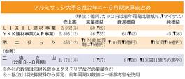 アルミサッシ大手3社の4~9月期/全社減益、価格転嫁遅れ/エネ価格上昇、円安など影響