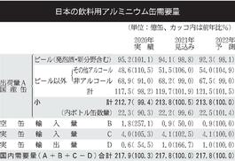 アルミ缶リサイクル協会/22年のアルミ缶需要予測/横ばい、217億8000万缶/「ビール」減も「チューハイ」など増加