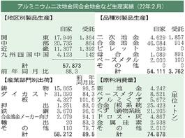2月のアルミ二次合金生産/12%減の5万7873トン
