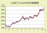 LME/アルミ先物価格上伸/13年ぶり3200ドル台