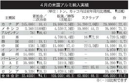 5月のアルミ合金地金輸入/30%増、9.2万トン