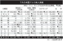 米国の7月アルミ輸入/横ばいの47万2000トン