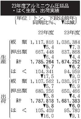 23年度のアルミ圧延品出荷/2年連続減、170万トン割れ