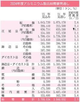 24年度のアルミ製品需要予測/3年ぶり増、385万トン