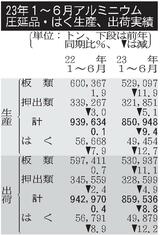店売り向けアルミ圧延品出荷/1~6月は37%減、半導体不振で10年ぶり低水準