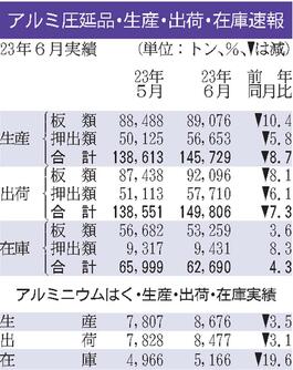 アルミ圧延品出荷/6月、7%減の15万トン/車向け堅調も建材不振