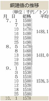 建値/JX金属、銅1万円下げ/三菱マテ、鉛3000円下げ