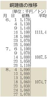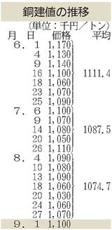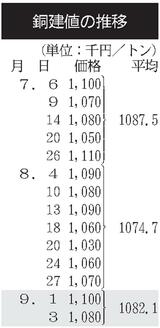 建値/JX金属、銅3万円上げ/三井金属、亜鉛6000円下げ