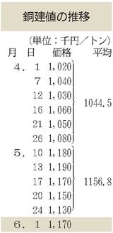 建値/JX金属、銅4万円上げ/三井金属、亜鉛9000円上げ