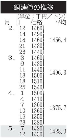 建値/JX金属、銅1万円上げ/三井金属、亜鉛1万5000円上げ