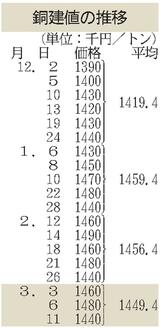 建値/JX金属、銅3万円上げ/三菱マテ、鉛3000円上げ