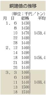 黄銅棒原料購入値/17円上げの1064円/日本伸銅