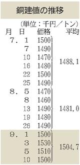 建値/JX金属、銅2万円上げ/三井金属、亜鉛6000円上げ