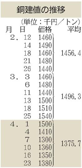 JX金属、銅建値1万円下げ