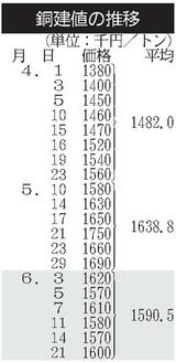 黄銅棒原料購入値/17円下げの1101円/日本伸銅