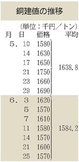 建値/JX金属、銅3万円下げ/三井金属、亜鉛3000円上げ