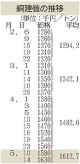 JX金属、銅建値2万円上げ/過去最高の165万円
