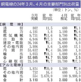 4月の銅電線出荷/2.5%増、5万1500トン/建設・電販向けなどけん引