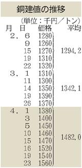 JX金属、銅建値2万円上げ/過去最高の156万円
