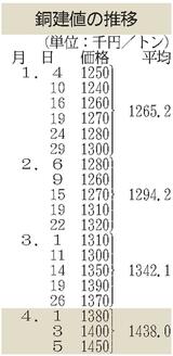 銅建値、初の140万円/最高値を小幅更新