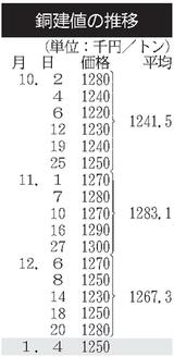 建値/JX金属、銅2万円上げ/三井金属、亜鉛9000円上げ