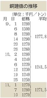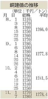 建値/JX金属、銅2万円上げ/三井金属、亜鉛3000円下げ