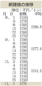 黄銅棒原料購入値/16円上げの906円/日本伸銅