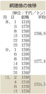 黄銅棒原料購入値/19円上げの909円/日本伸銅
