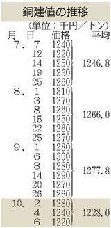建値/JX金属、銅2万円下げ/三菱マテ、鉛6000円下げ